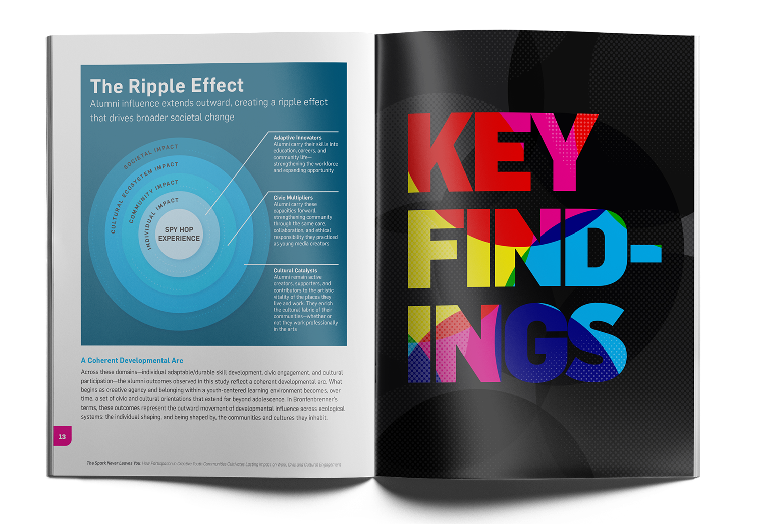 Convergence also led the design of the publication in collaboration with Kate Burgener Creative, applying Spy Hop’s visual identity to create a report that is both engaging and accessible, while maintaining the rigor of a scholarly publication.